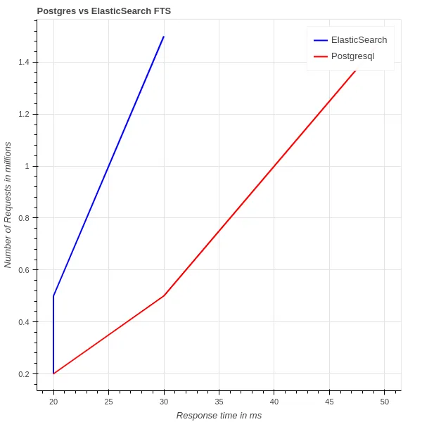 postgresql vs elasticsearch 응답시간 비교 그래프 (2021년)
