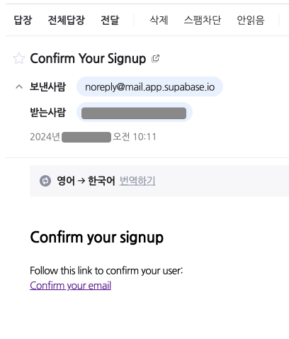 - 이메일 인증 방식이라서 supabase cloud 프로젝트가 필요함